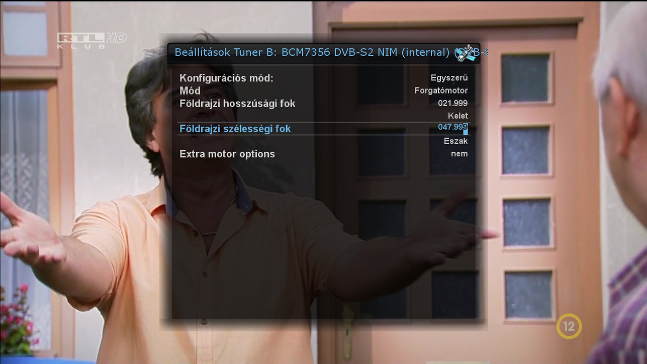 B tuner konfigurációs mód egyszerű, mód forgatómotor és megadod a koordinátádat