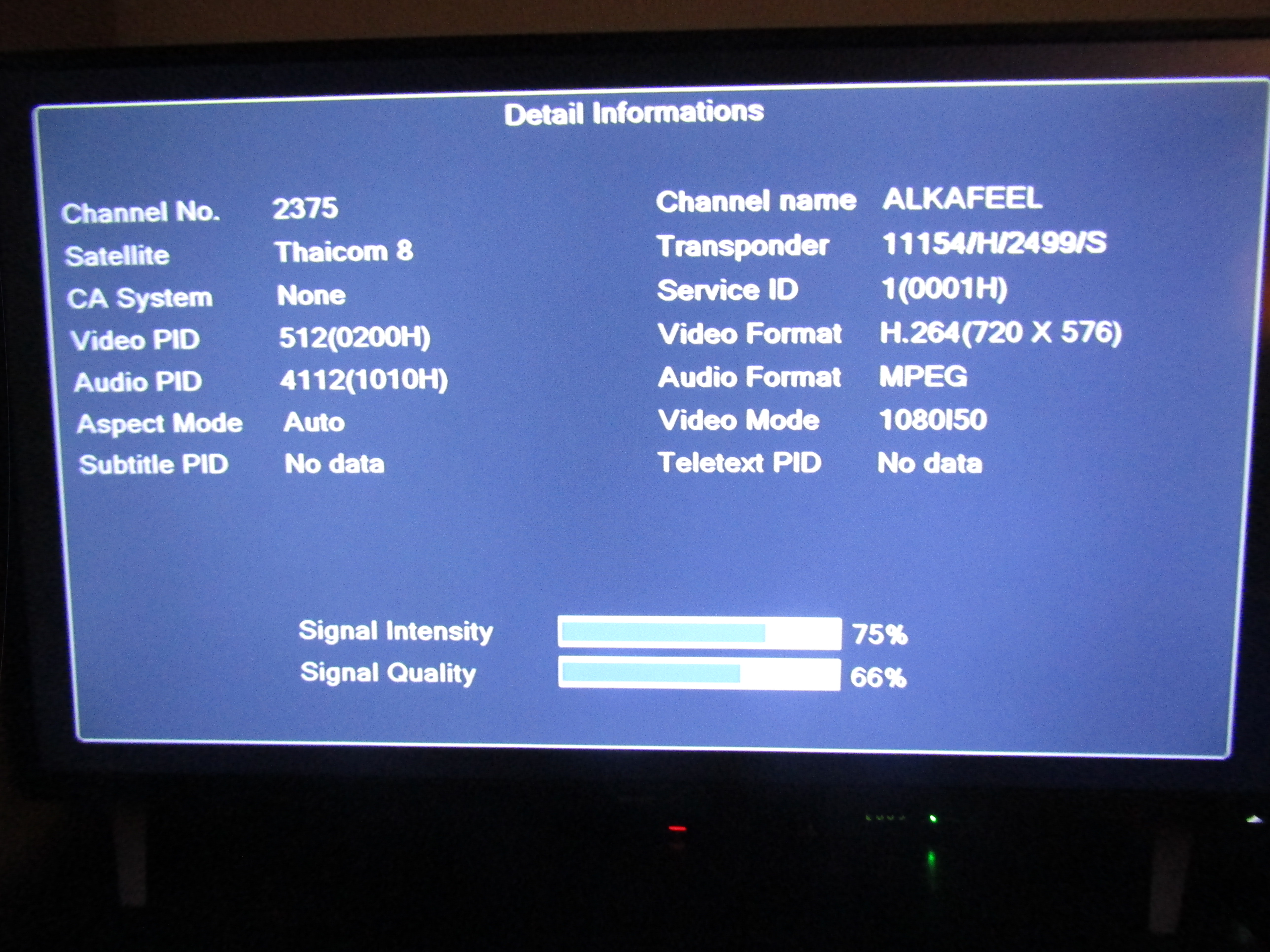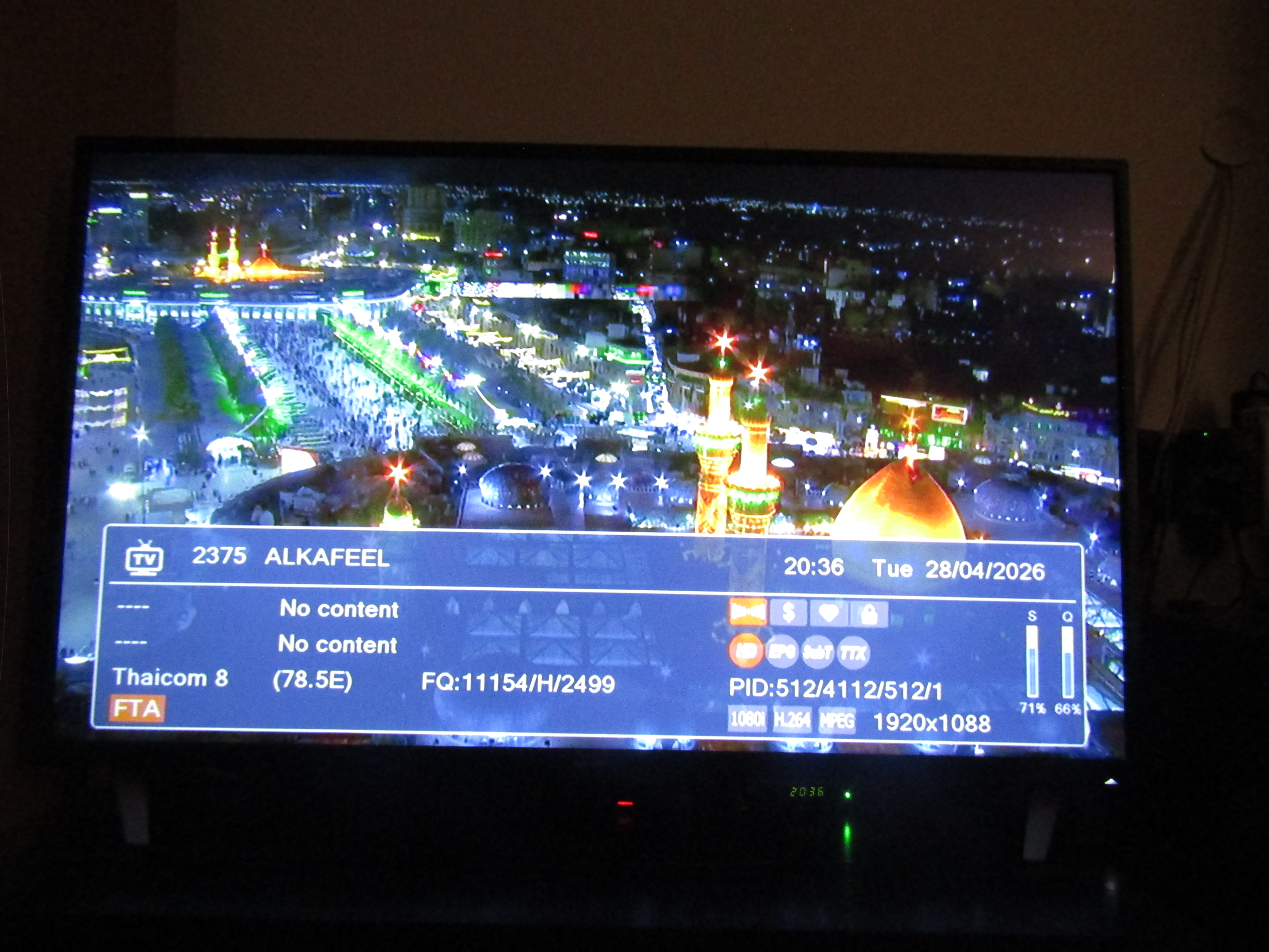 11154 H 2499 (itt találta meg a Blindscan anno egyszer, úgyhogy ezeket az értékeket írtam be, a hivatalos 11153 H 2500), Thaicom 8 Steerable beam. Al Kafeel TV!!! Este 8-kor jött meg a jel szakaszosan, és erősödik, tippem szerint este 10 körül lehet majd a legerősebb. Az iráni csomagok nem mozdulnak, de így is nagyon büszke vagyok, mivel ez a nyaláb hivatalosan Törökország keleti végéig ér kelet felől!