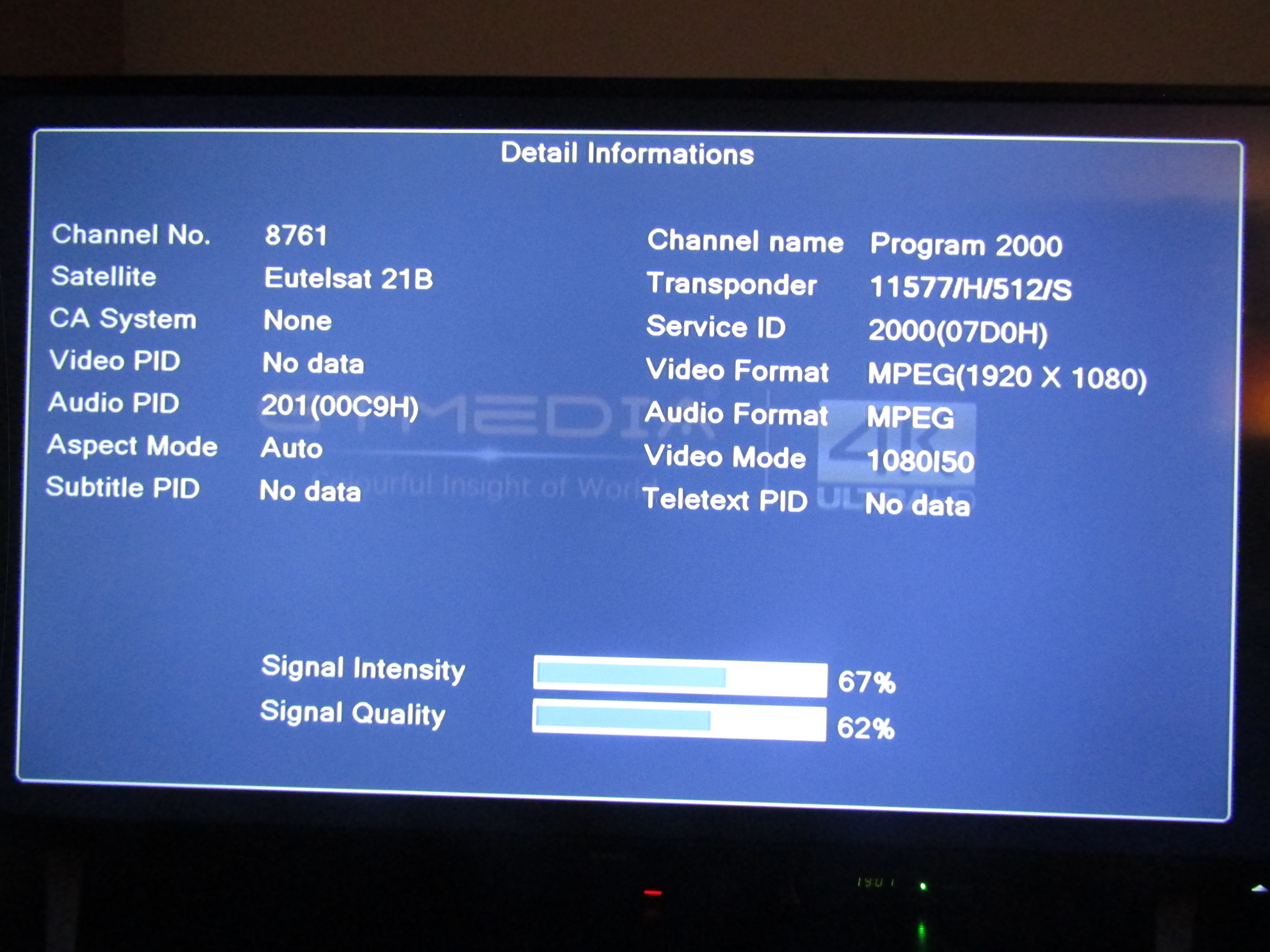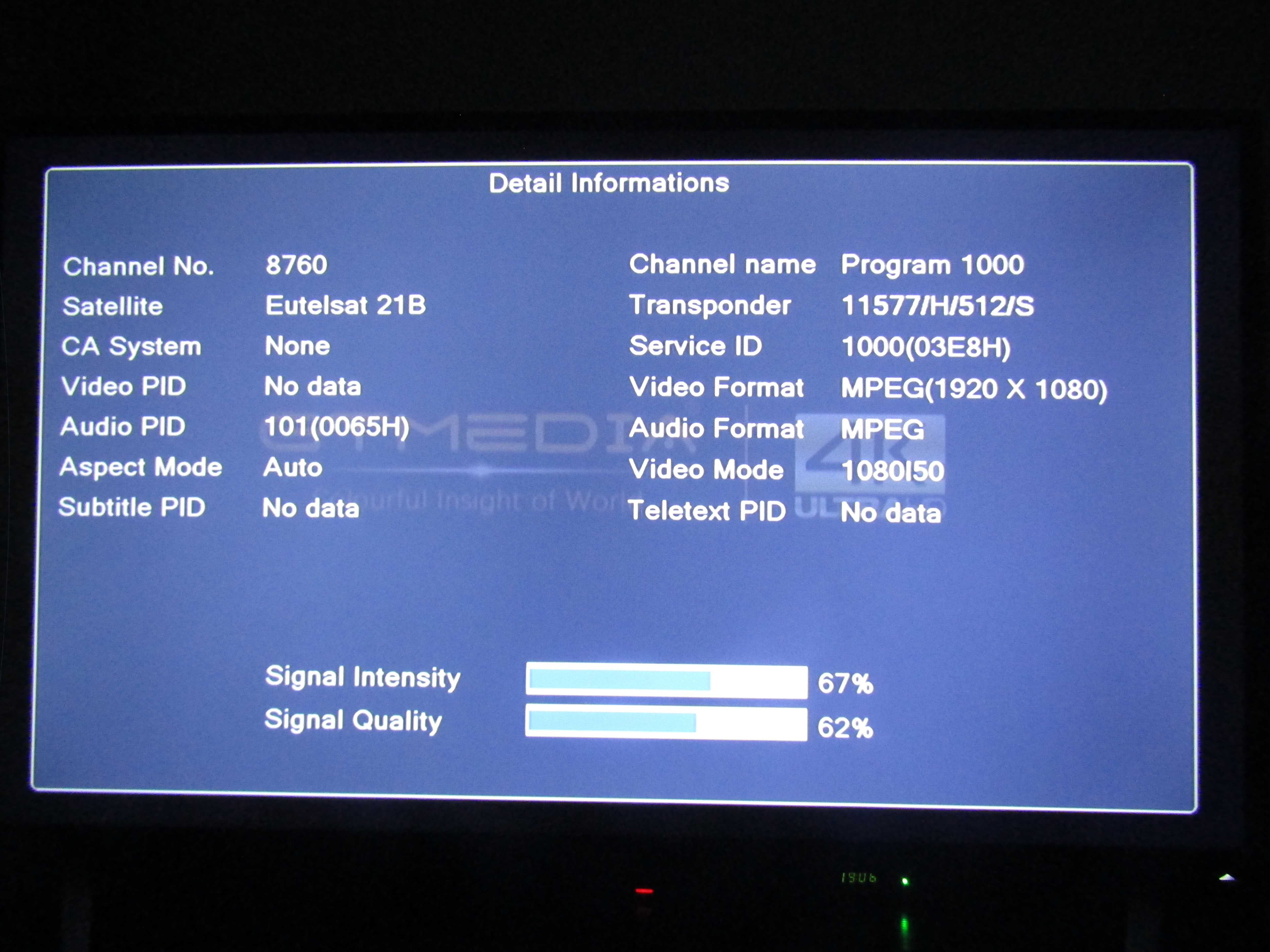 Keleti 21.6 fok, Eutelsat 21B Ku-band Western beam, 11577 H SR: 512, Radio Méditerranée minicsomag. Ez megvolt már régebben is, most újra bevadásztam. Sajnos a Dubai minicsomagról ami pár napig adott erről a nyalábról kábé két hete nem csináltam fotót, ez lett a kárpótlás. Itt kábé 40-41 dBW lehet a jelerő.