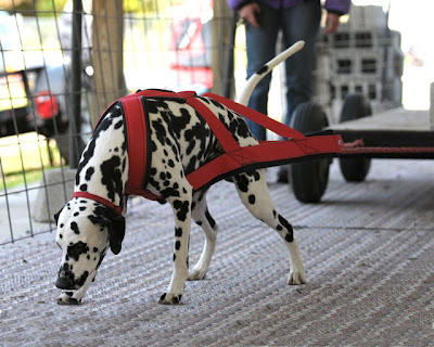 "This shot is of the weight pull competition. There is 7,320 lbs on the cart, nearly the equivalent of a compact car, and the dog weighs less than 100 lbs."