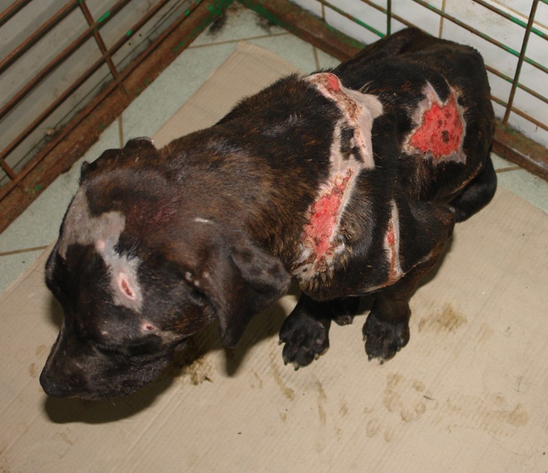 szerencsere eleg jol viseli a kezelest, nem ellenkezik, a szaja is csak a biztonsag kedveert van bekotve. Most mar csoval, nagyon jo az etvagya. Szepen javulnak a sebei. Setalni viszont nem szeret, a kenneleben erzi magat biztonsagban es ha kihozzuk pisilni, egybol menne is vissza. Majd alakul ez is.